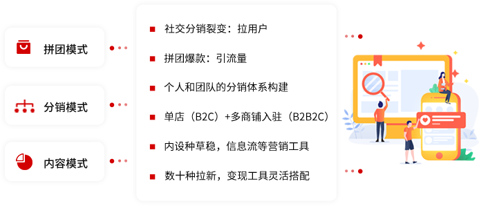 拼团、砍价、直播等多种营销插件组合