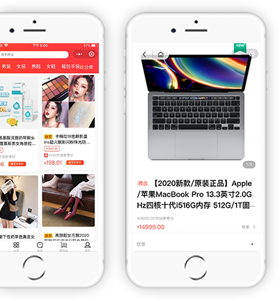 零售一体化的电商系统,适用于手机APP、微信H5、微信小程序等多个应用终端,